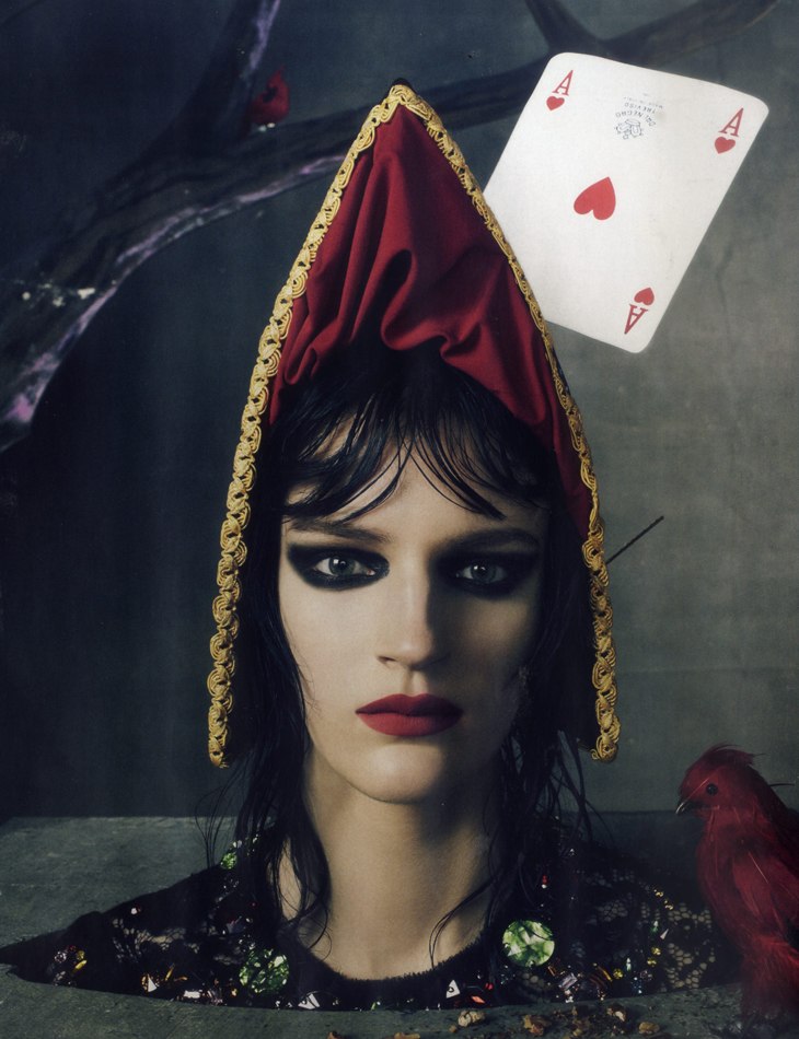 Molto bello questo servizio - specie la foto di copertina, i primi piani e quella con gli insetti alla Elsa Schiaparelli -, l'unica immagine che proprio non mi piace è la seconda; c'è qualcosa che non mi piace nell'abbinamento tra copricapo, acconciatura e viso della modella. Per il resto fantastico servizio